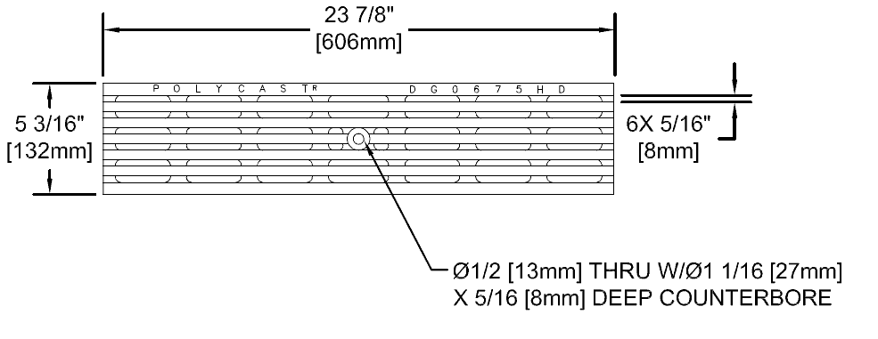 Heavy Duty longitudinal, or transverse, slotted cast ductile iron grate for the polymer concrete POLYCAST® 600 Series, and 700 Series trench drain systems by Hubbell. ADA Compliant. Painted black.